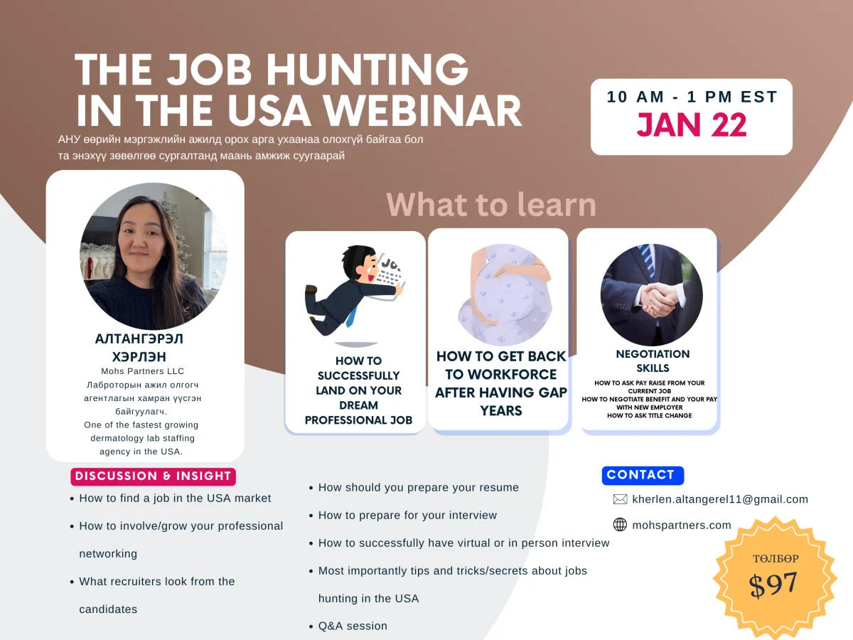 Thank you for visiting my webpage. My name is Kherlen Altangerel. Mother of 3, wife, and CEO of Mohs Partners LLC. Favorite thing to do is talk business, do business, help others and of course lastly love to spend quality time with my family. Over last 10 years. I founded 2 companies in Mongolia and 2 companies in the USA. Journey has not started smooth. However I am extremely thankful where I am today and what I stand for.